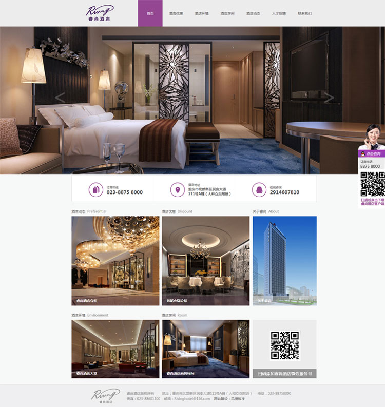 睿尚酒店座落于北部新區核心地段,地理位置便捷優越,是民安大道的標志性建筑。南鄰觀音橋商圈,北接渝長、渝合、機場高速路及金開大道。距龍頭寺火車站(汽車站)僅3分鐘車程,重慶江北國際機場僅15分鐘車程。睿尚酒店裝修精致時尚、高雅不凡,竭力為賓客提供全方位的“精致時尚商務之旅”。擁有寬敞舒適的客房132間,豪華齊全的配套設施和專業化的酒店管家式團隊,并配有會議廳、大堂吧、特色火鍋等服務設施。立足于滿足賓客所需,是商務、旅游、會議人士的首選。