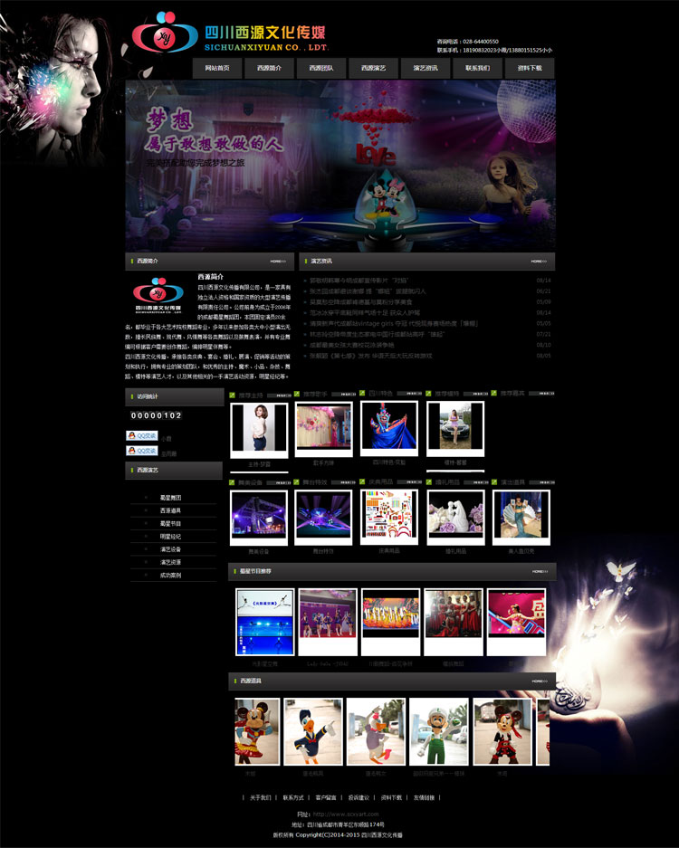 舞團十余年的演出活動集聚了大量的客戶和演藝資源,為更好地為廣大客戶提供更專業的演藝服務,2013年,公司領導人開始籌建四川西源文化傳播有限公司,以期實現從純粹的商演團隊到綜合性演藝服務公司的轉變。2014年2月,公司正式注冊成立。目前已在成都各演藝平臺全面宣傳,并吸引了大量的演藝資源加盟。