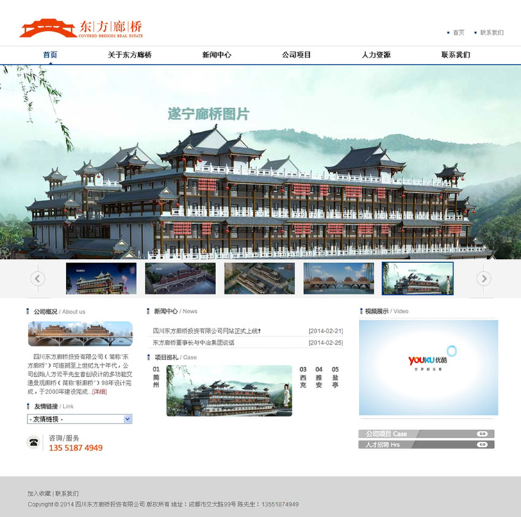四川東方廊橋投資有限公司(簡稱“東方廊橋”)可追溯至上世紀九十年代,公司創始人方云平先生首創設計的多功能交通景觀廊橋(簡稱“新廊橋”)98年設計完成,于2000年建設完成西充“好吃橋”多功能廊橋。西充好吃橋廊橋是全國多功能廊橋的首次創新,且獲得中央國務院總理——朱镕基的親自批示。獲得香港建筑創新 ——金獎。“東方廊橋”位于我國著名高等學府四川省西南交通大學校內,環境優美,人才薈萃,有豐富的技術儲備,多學科多專業的工程技術人員,西南交大36名教授及高工和公司組成高效的管理團隊,長期合作。雄厚的技術支撐為廊橋市場的建設奠定基礎。公司董事長方運平 先生多年來,潛心于新廊橋的開發研究,已獲得國家知識產權局頒發的“多功能廊橋—發明專利”,“環保發明”十多項專利證書等,并獲得中央文化部的表彰。經香港專利事務所評估,無形價值數十億元。
